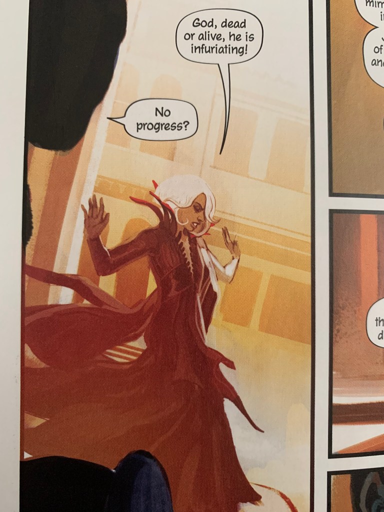 A small complaint though, and I had this same comment about the Netflix show, is that the storyline bounces around quite a lot. If you’re not paying attention, or reading carefully, you’re in danger of losing the thread because this isn’t a simple world nor is it populated by one dimensional characters.