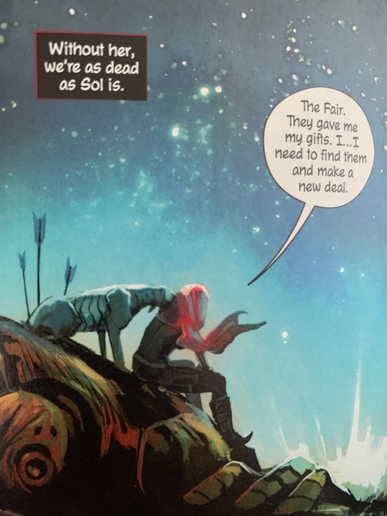 There’s Ash’s sister Angela who plays a cyberpunk named Neo. In order to power her electronics, she uses ‘fair gold’, something which readers get to learn a little more backstory about in this issue.