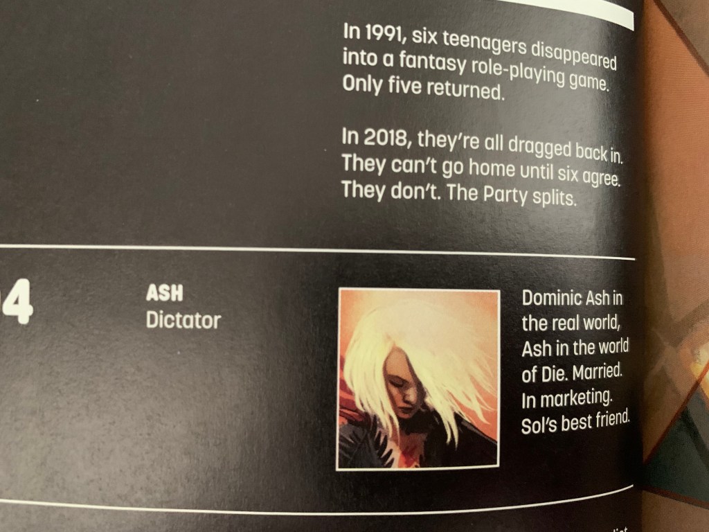 I think the character with the most potential for growth is Ash, the Dictator, who is a man in the real world, but a woman in the world of Die, and controls people’s emotions with her voice. But all of the movers and shakers in this drama have some growing to do.